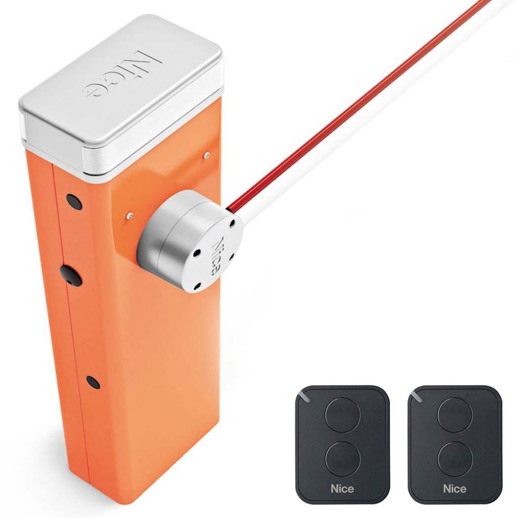 Kit bariera automata Nice S4BAR-3M, model S-Bar, cu brat de 3 metri, telecomanda, este un sistem electromecanic de ridicare a barierei pentru controlul accesului rutier cu carcasa din otel.